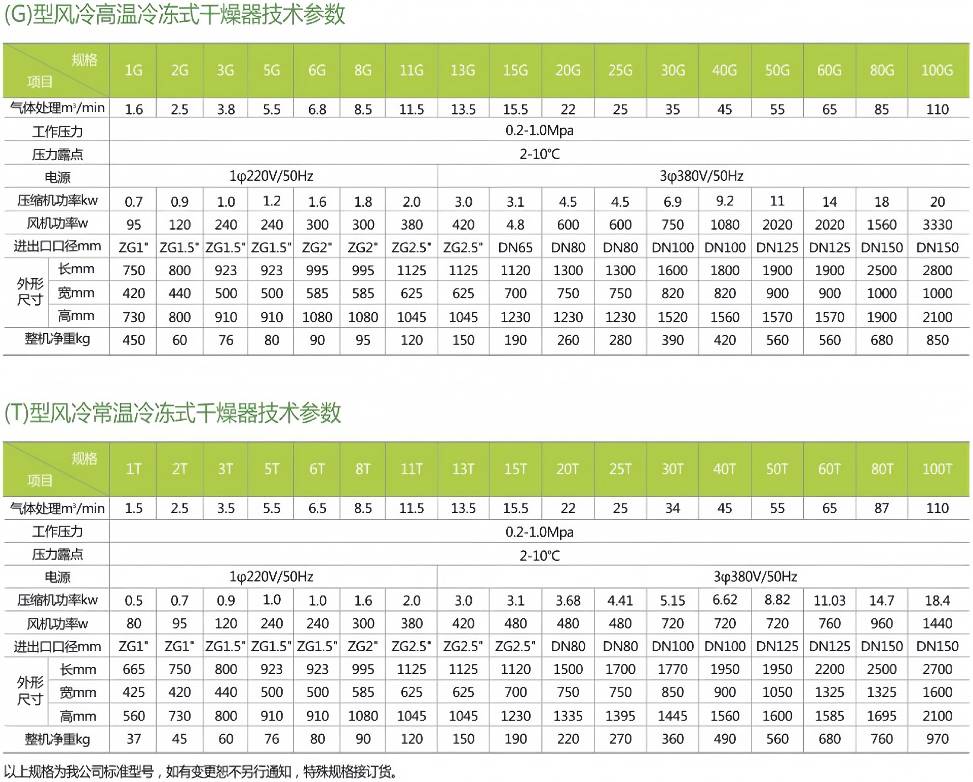 为使冷冻式干燥机在不同工况下,使其能够稳定和节能运转,欣靓牌冷冻式干燥机根据客户需求和实际使用工况分为:高温风冷型、高温水冷型、常温风冷型和常温水冷型。